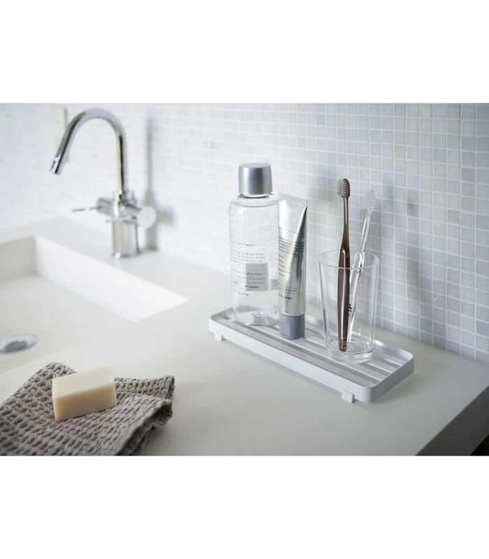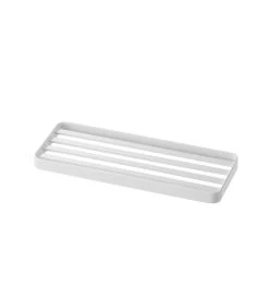 Dit functionele sanitaire rekje van Yamazaki kan worden gebruikt als opslagruimte voor badproducten of een zeepbakje. Gemaakt van staal en ontworpen in Japan.