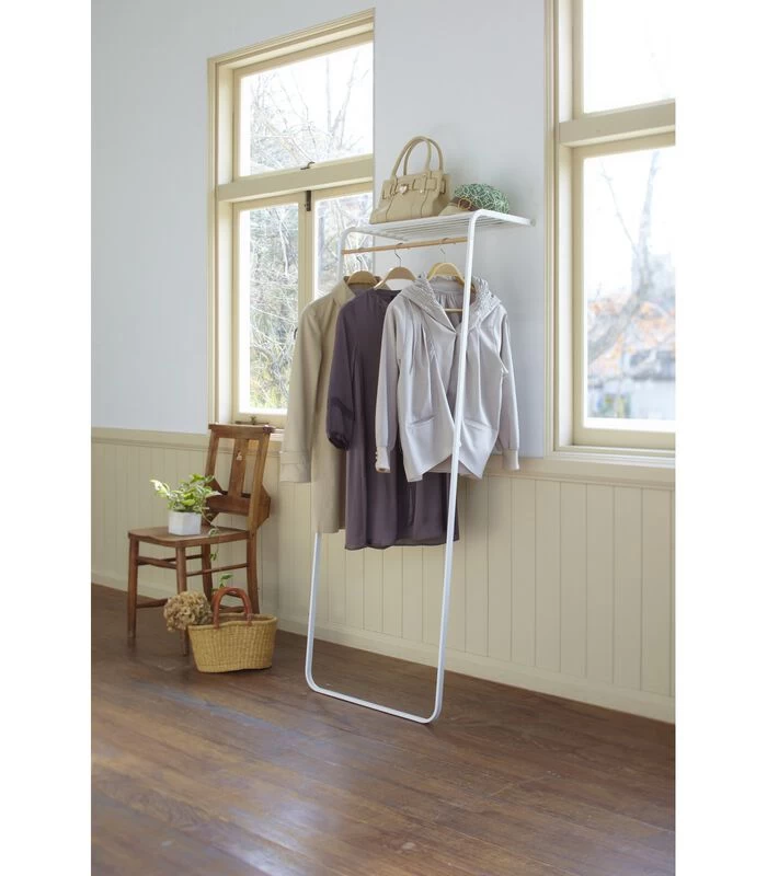 Gebruik dit stijlvolle rek om uw jassen en blousen aan te hangen. Bovenop is nog extra ruimte voor uw petten, hoeden, tassen of wat anders.